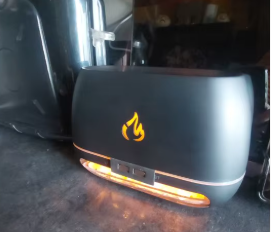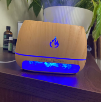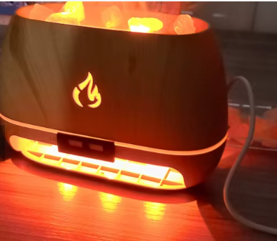 מאוד יפה על השולחן שלי! 💨 הערפל עולה לאט והאפקט של האש מאוד מרגיע.
